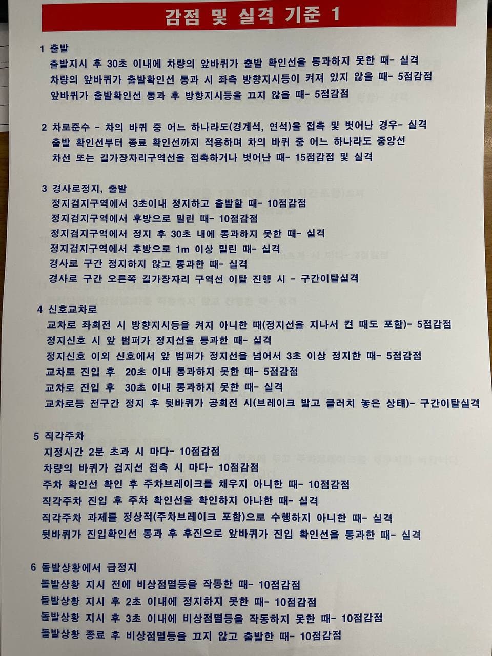 장내기능시험 감점 및 실격기준